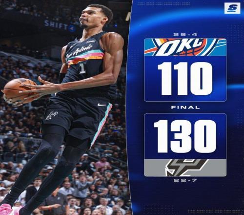与此同时,这是雷霆本赛季第一次真正意义上的惨败。此前三场失利,他们共计只输掉9分,每一次都是关键时刻憾负,但这次他们遭遇的是20分惨败。作为全联盟防守最好,打出历史级防守表现的“最强之盾”,这一晚的雷霆被马刺的进攻打爆了。
